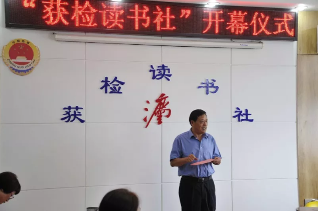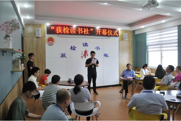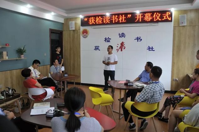为加强该院文化建设,增强干警凝聚力,培养读书爱好者的读书兴趣,提升阅读知识水平,创造良好的读书氛围,给干警提供一个良好的交流平台,从而带动更多的人喜欢读书、热爱读书。由院党组书记、检察长高遂林同志提议并亲自指导,干警自发组织、成立“获检读书社”。读书社于