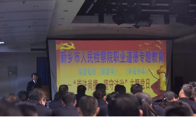 为深入学习贯彻党的十九大精神,加强我院“四德”建设,深化职业道德教育,推进全国文明单位创建工作,鼓舞广大党员干部进一步落实精准扶贫工作,确保坚决打赢脱贫攻坚战。11月23日,新乡市人民检察院举办了“崇法尚德 坚守法治”主题党日活动,组织全院干警集中观看了影片《邹碧华》和《幸福快车》,机关100余名干警参加了活动。