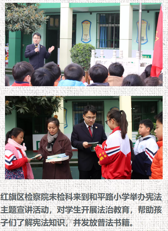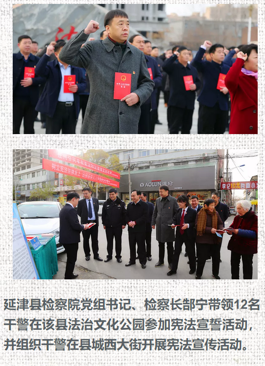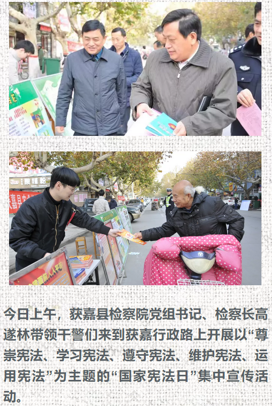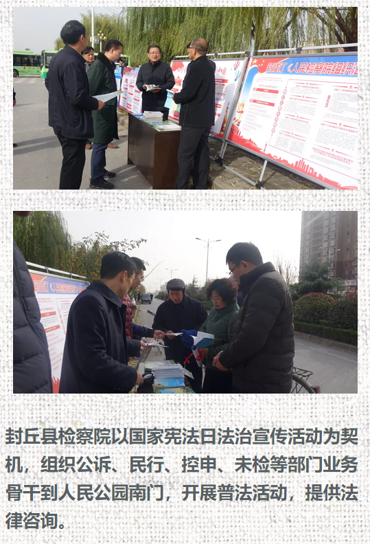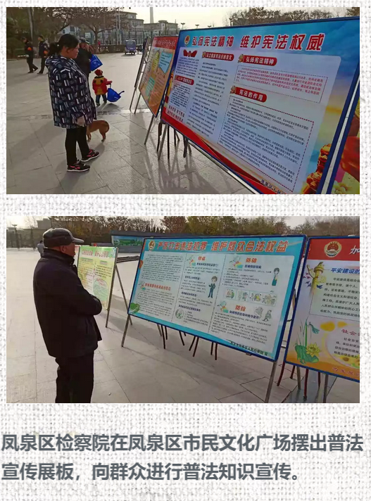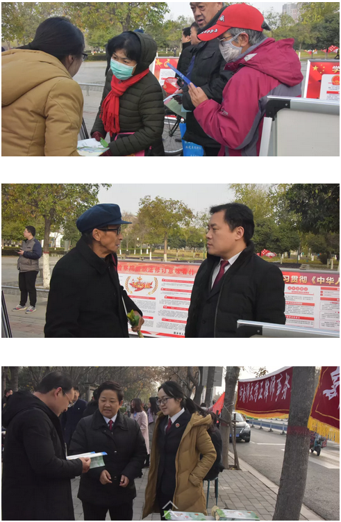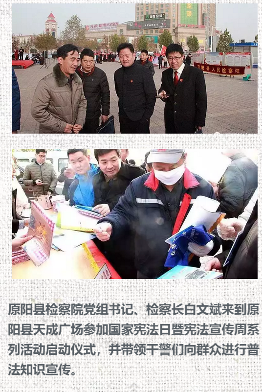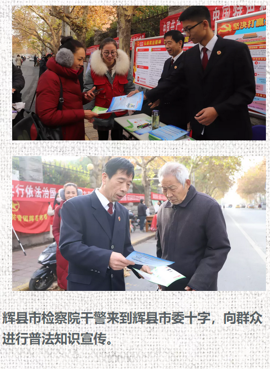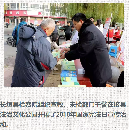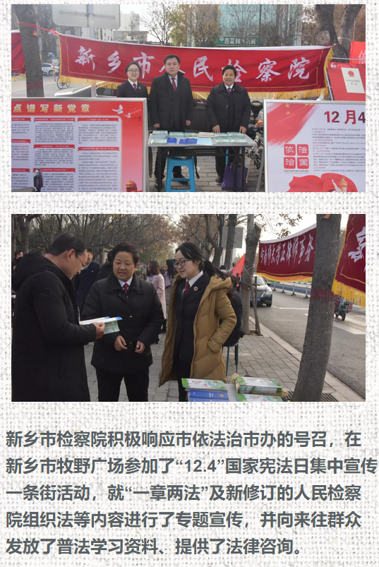 新乡市检察机关积极响应市依法治市办的号召,参加了“12.4”国家宪法日集中宣传一条街活动,就“一章两法”及新修订的人民检察院组织法等内容进行了专题宣传,并向来往群众发放了普法学习资料、提供了法律咨询。