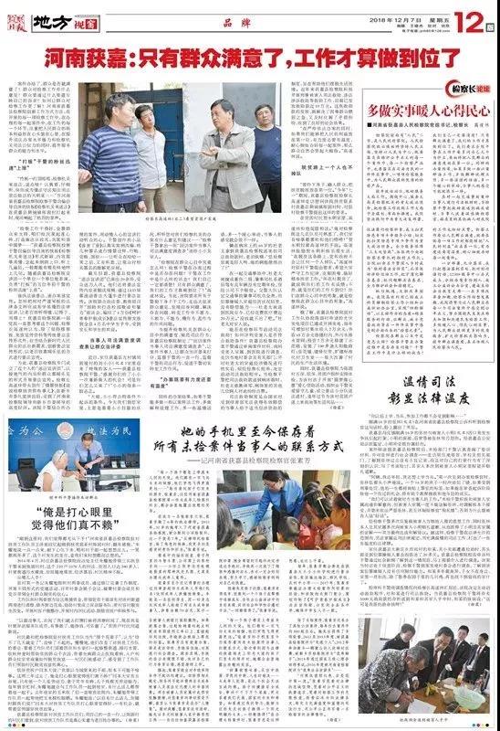 12月7日,《检察日报》对获嘉县院各项检察业务工作进行报道。
