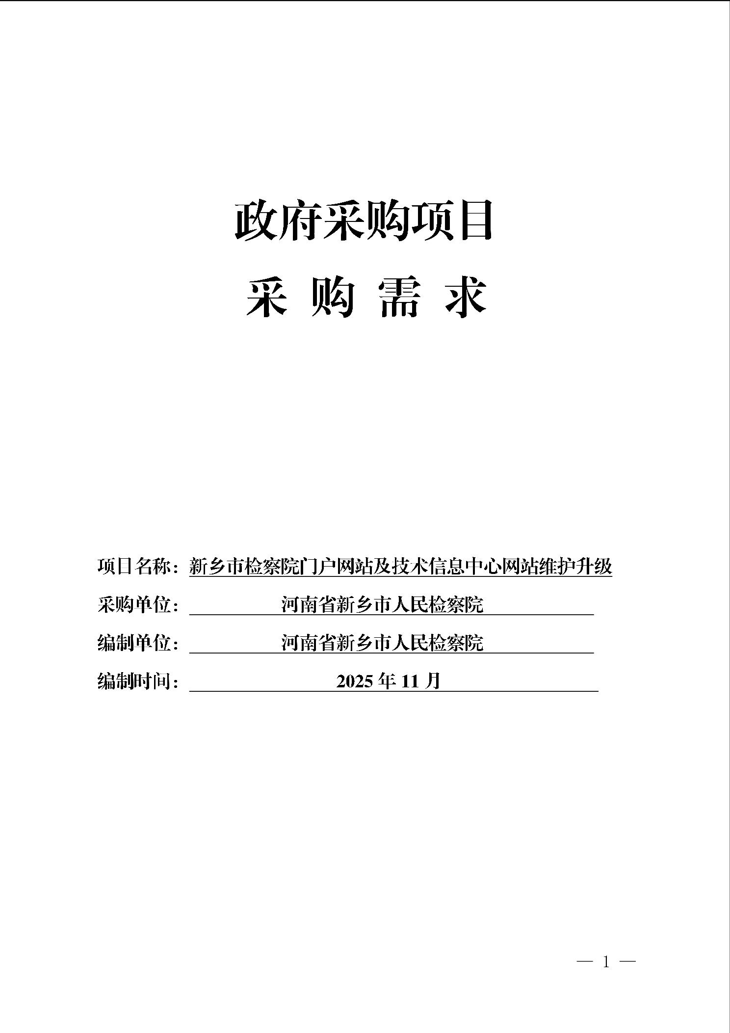新乡市检察院门户网站及技术信息中心网站维护升级