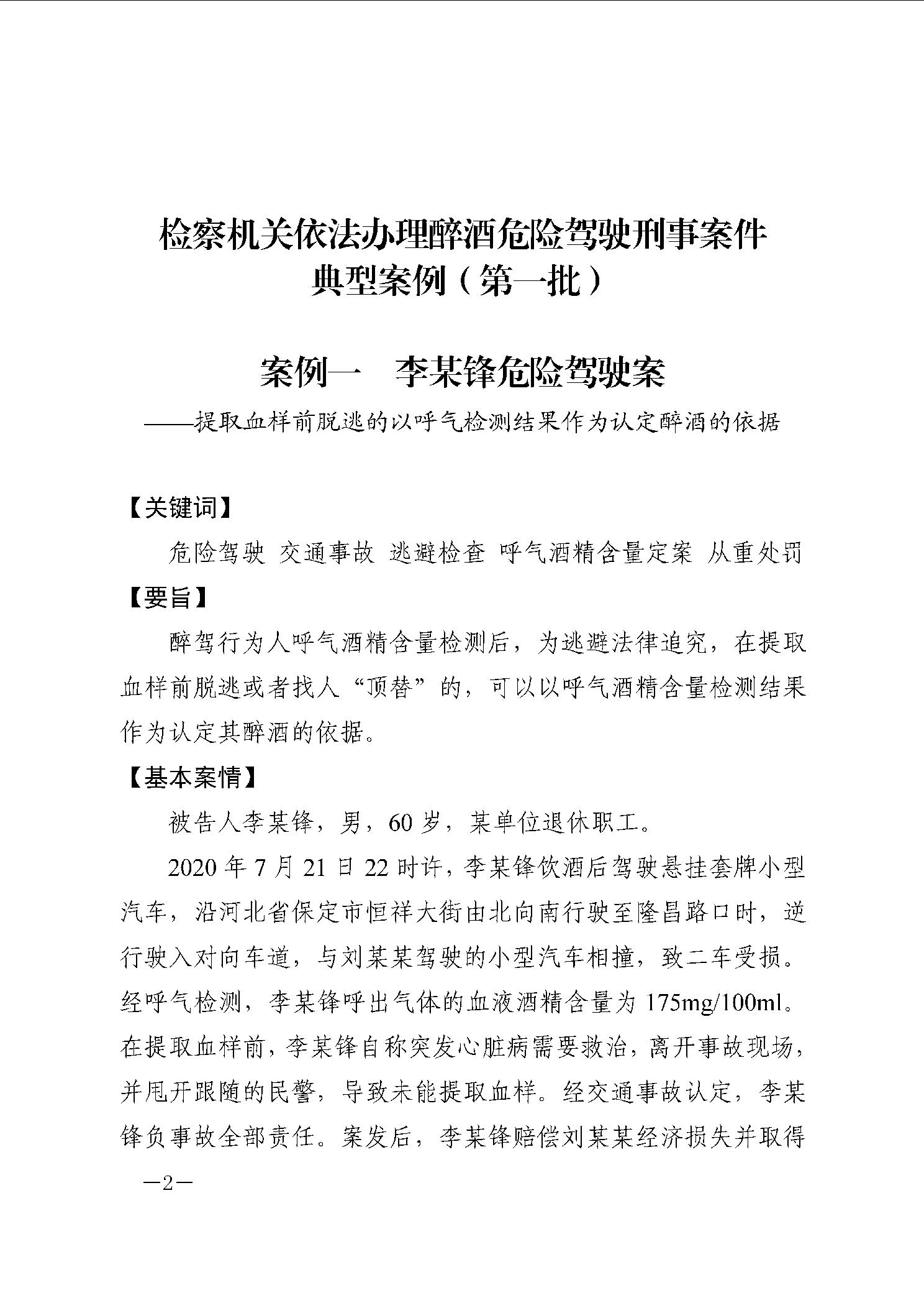 检察机关依法办理醉酒危险驾驶刑事案件典型案例(第一批)