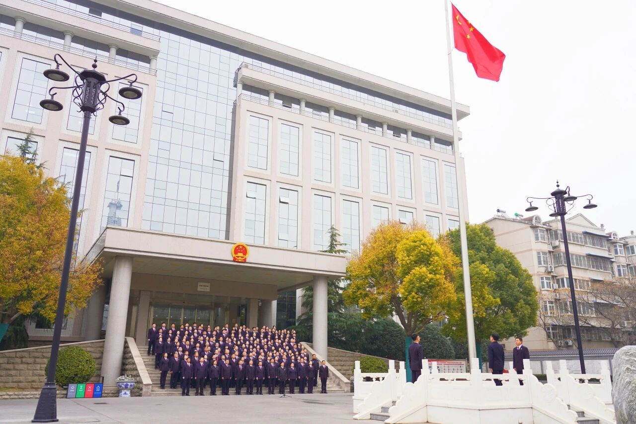 伴随着雄壮激昂的国歌声,鲜艳的五星红旗冉冉升起。全体干警身姿挺拔、精神抖擞,面向国旗行注目礼,以庄严的姿态迎接新一年的到来。