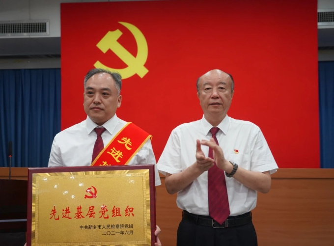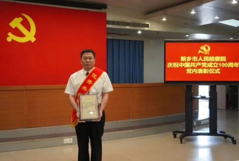 6月30日上午,新乡市人民检察院举行庆祝中国共产党成立100周年党内表彰仪式,卫河院(第十三党支部)获评“先进基层党组织”。卫河院宋汉利同志获评“优秀共产党员”称号。