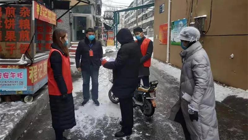 2020年2月6日,新年第一场春雪不期而至,早上八点的气温仍在零下,位于新乡市牧野区的西村家属院门口两名志愿红马甲在白雪映衬下格外醒目。