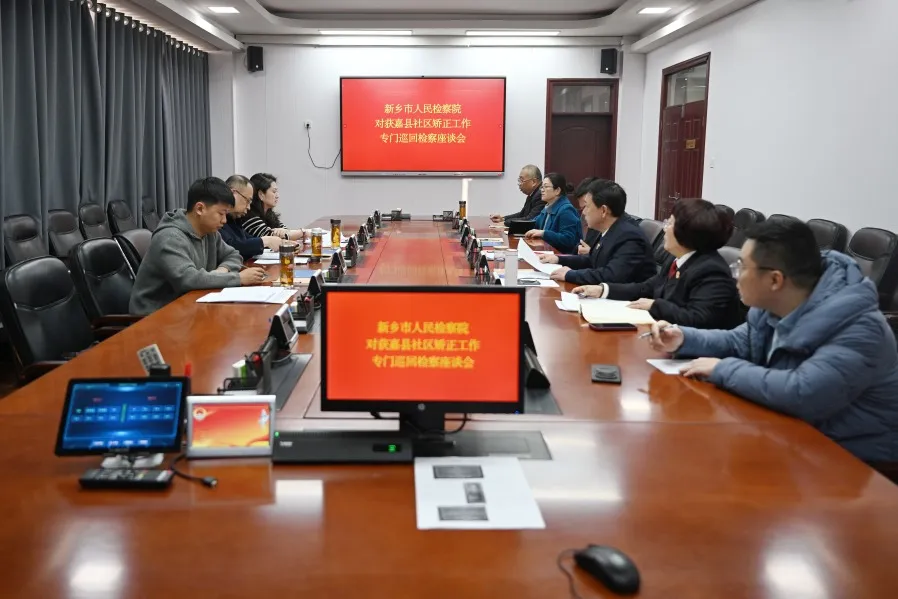 2024年12月5日,新乡市卫河地区人民检察院副检察长孔斌一行3人到获嘉县人民检察院调研刑事执行检察工作,通过听取汇报、召开座谈会方式详细听取刑事执行检察工作汇报。获嘉县人民检察院党组书记、检察长牛卫军,党组成员、副检察长宋杰及刑事执行检察部门干警参加调研。